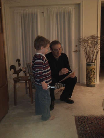 And then the Friday before thanksgiving Joseph, Bob, and I headed to Philly to visit my grandmother Selma and the rest of the family. This was our first time driving straight through during the day, which made me very nervous. In the end it went better then I expected—but in a strange way. Joseph managed to stay entertained most of the time, with only a couple truly difficult moments, but he NEVER FELL ASLEEP. This was a huge shock to me. I would never have thought it was even possible for a child to be in the car for 8 hours and not sleep. I still sleep in the car all the time! Confirmation he does not have my sleeping genes.